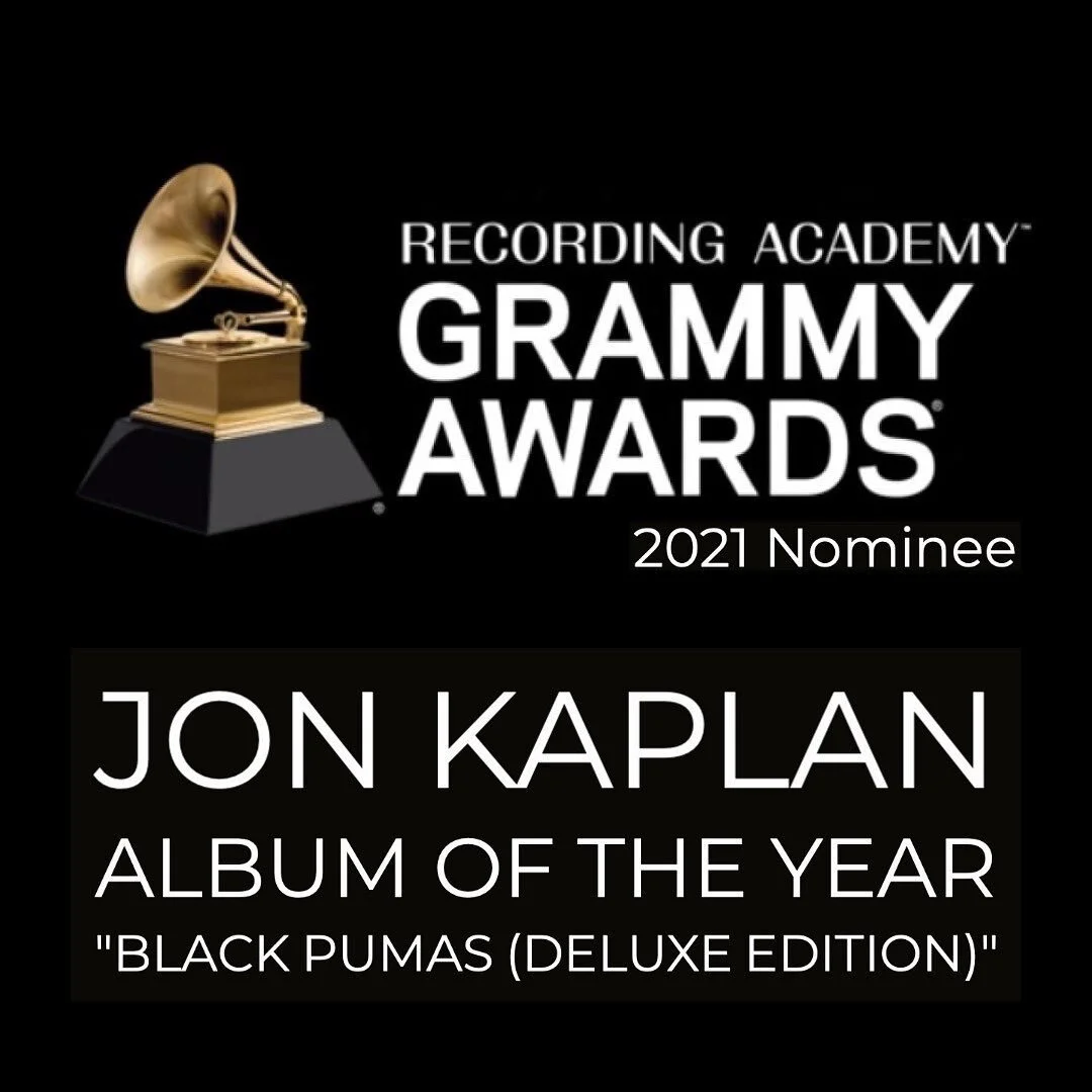 Congratulations to Jon Kaplan on his Grammy nominations for his contribution to the Black Pumas Self-Titled Debut Record, as well as his nomination for his work on the Eurovision Song Contest: The Story of Fire Saga!