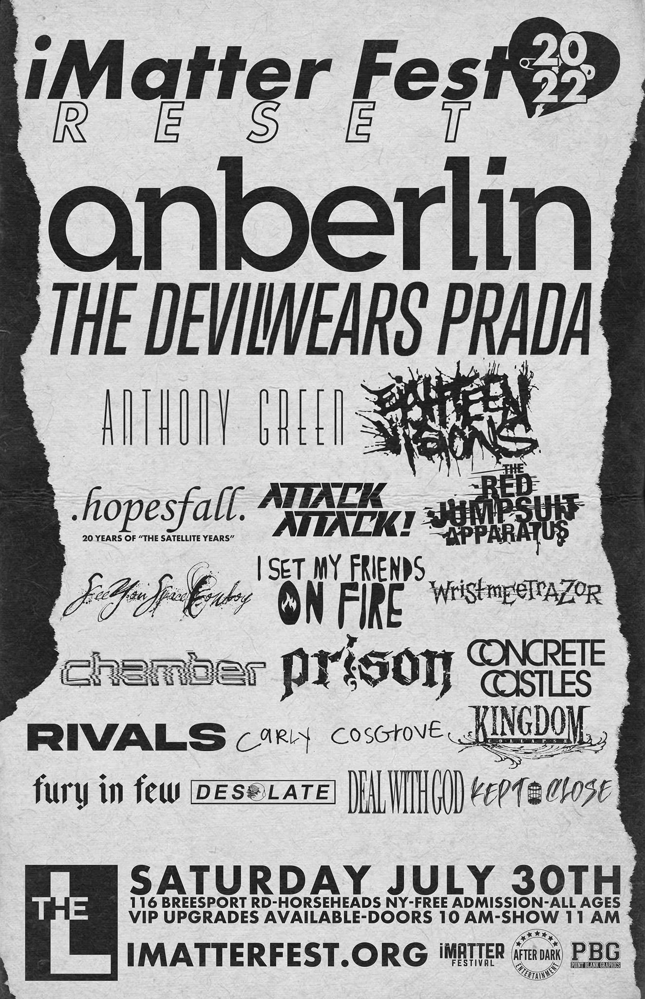 Ryan DavisJuly 11, 2022Anberlin, Imatter fest, Live Music, Horseheads July 30th, Anberlin Will Be Joining an Incredible Lineup as a Headliner for iMatter Fest 2022! Ryan DavisJuly 11, 2022Anberlin, Imatter fest, Live Music, Horseheads Ryan Davis Facebook0 Twitter Tumblr Pinterest0 0 Likes